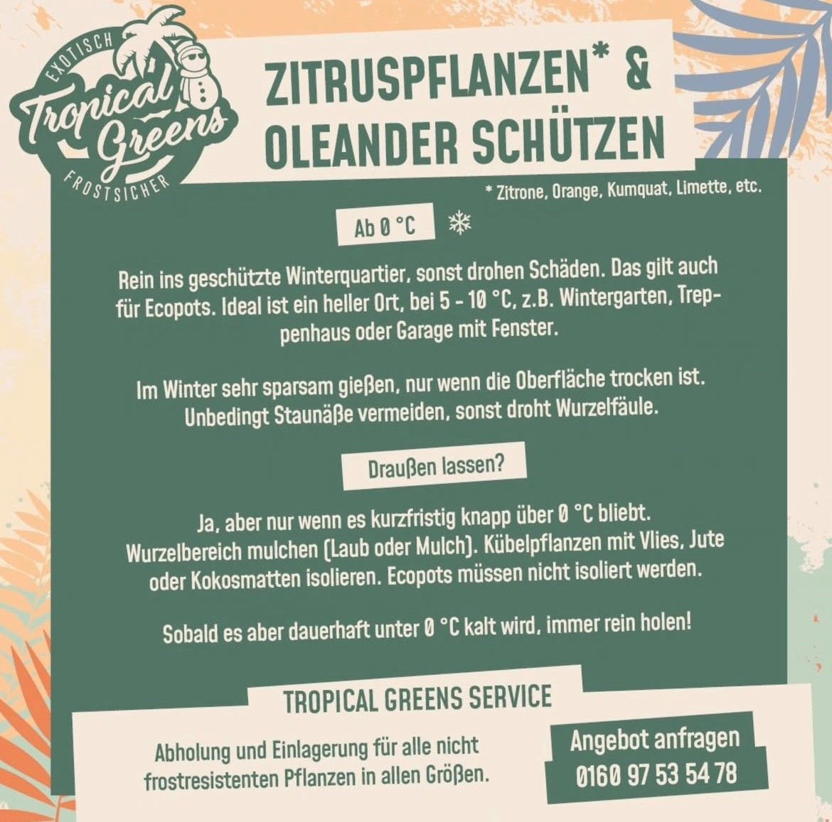 Jetzt sorgenfrei durch den Winter – mit dem Überwinterungsservice von Tropical Greens!